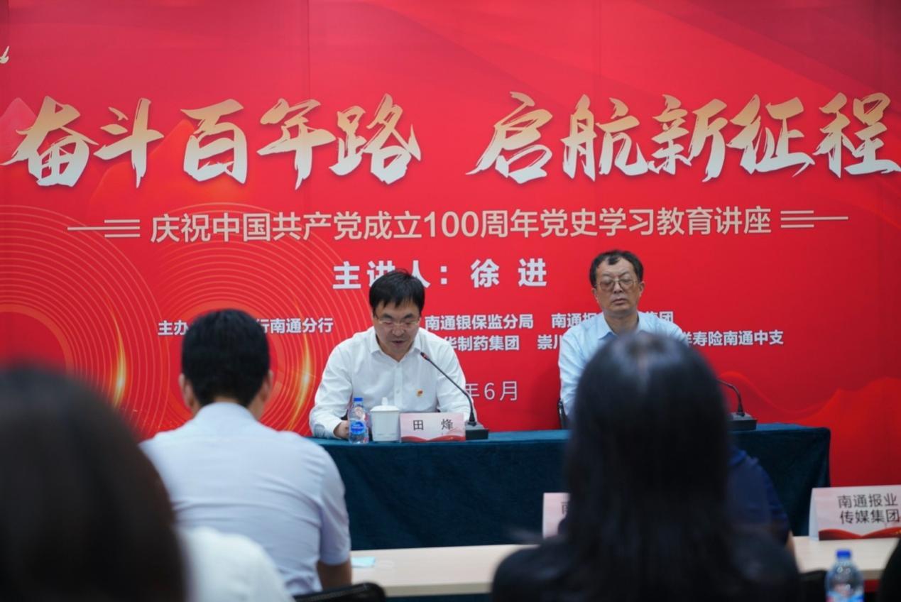 6月10日,直属党支部组织党员干部参加共建单位上海银行南通分行举办的“奋斗百年路 启航新征程”党建共建活动。活动中,大家听取了原海安县委宣传部副部长徐进作的关于庆祝中国共产党成立100周年党史学习教育讲座。