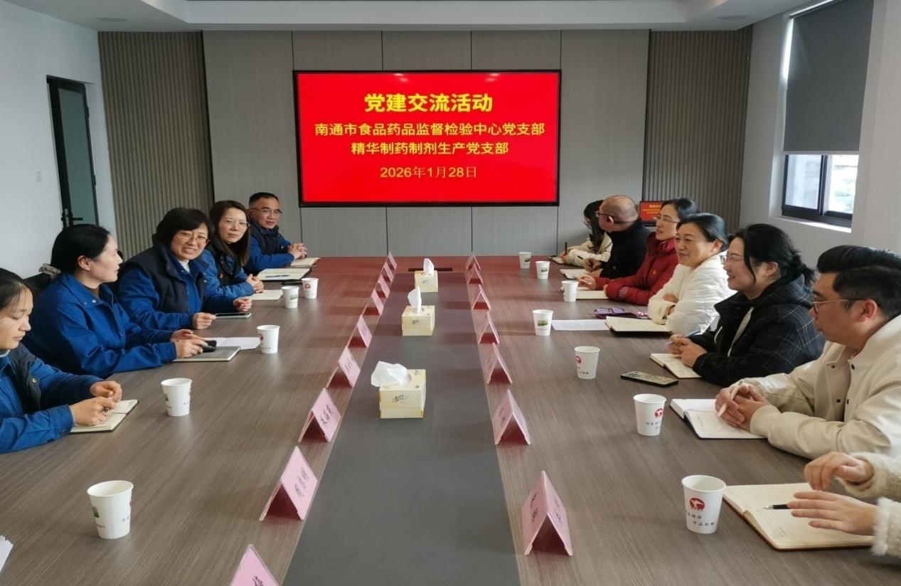 隆冬腊月,室外寒风习习,室内却暖意浓浓,一场气氛热烈的研讨交流活动正在进行。2026年1月28日下午,南通市食品药品监督检验中心党支部与精华制药制剂生产党支部在精华制药制剂生产研究所二楼会议室联合开展党建交流活动。此次活动以“精准帮服 ‘益’起同行”为主题,旨在通…