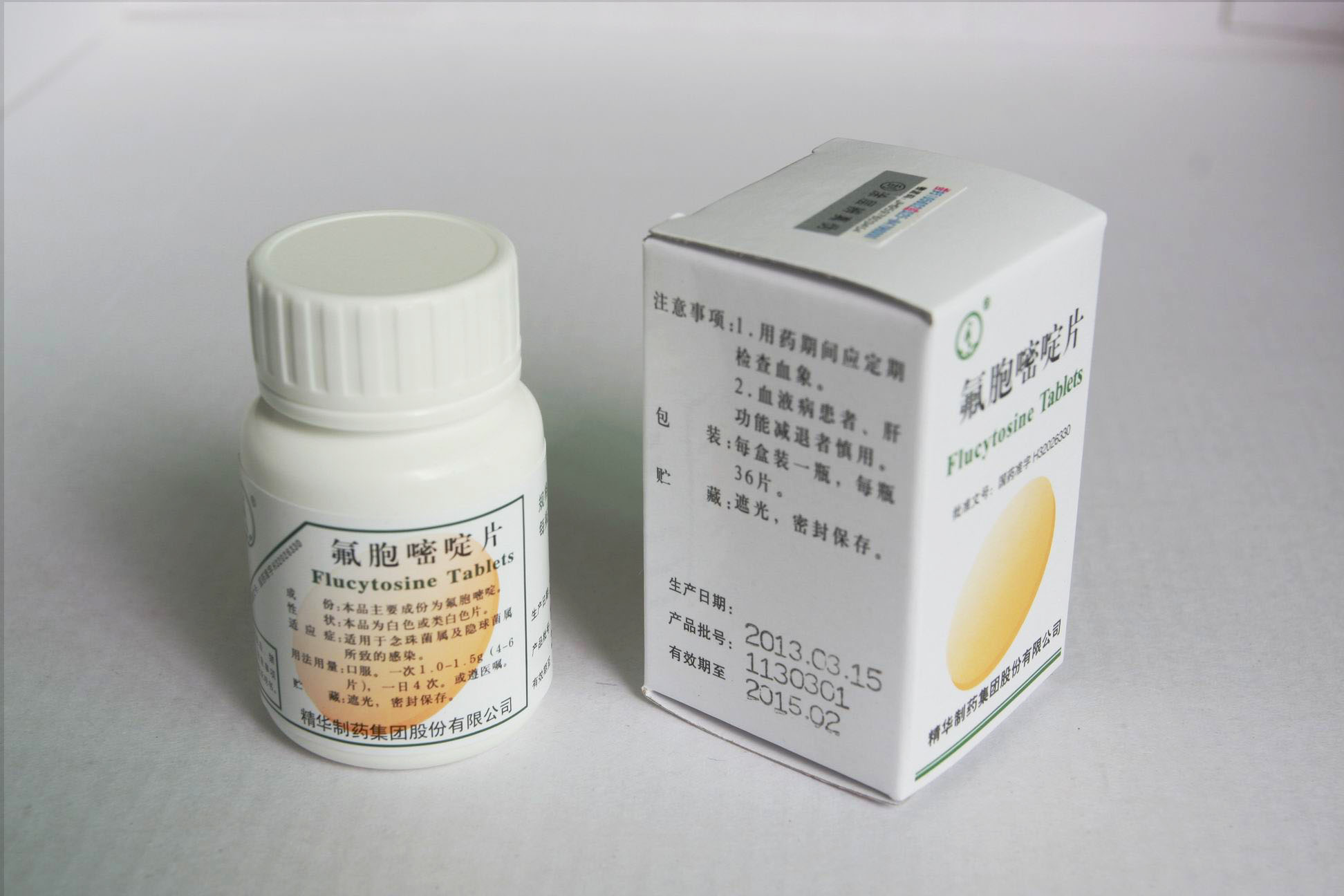 【药理毒理】本品能被真菌代谢成氟尿嘧啶,进入其脱氧核糖核酸,影响真菌核酸和蛋白质的合成。本品对真菌有选择性的毒性作用,在人体细胞内并不能大量地将氟胞嘧啶转换为氟尿嘧啶。