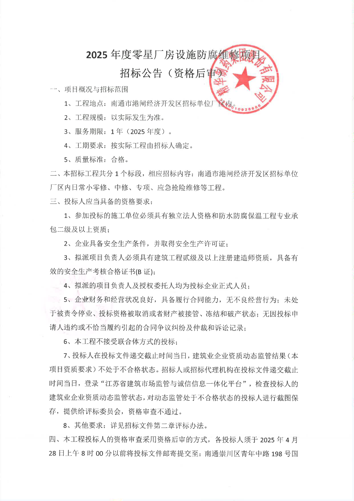 关于2025年度厂房设施防腐招标文件,详见下图: