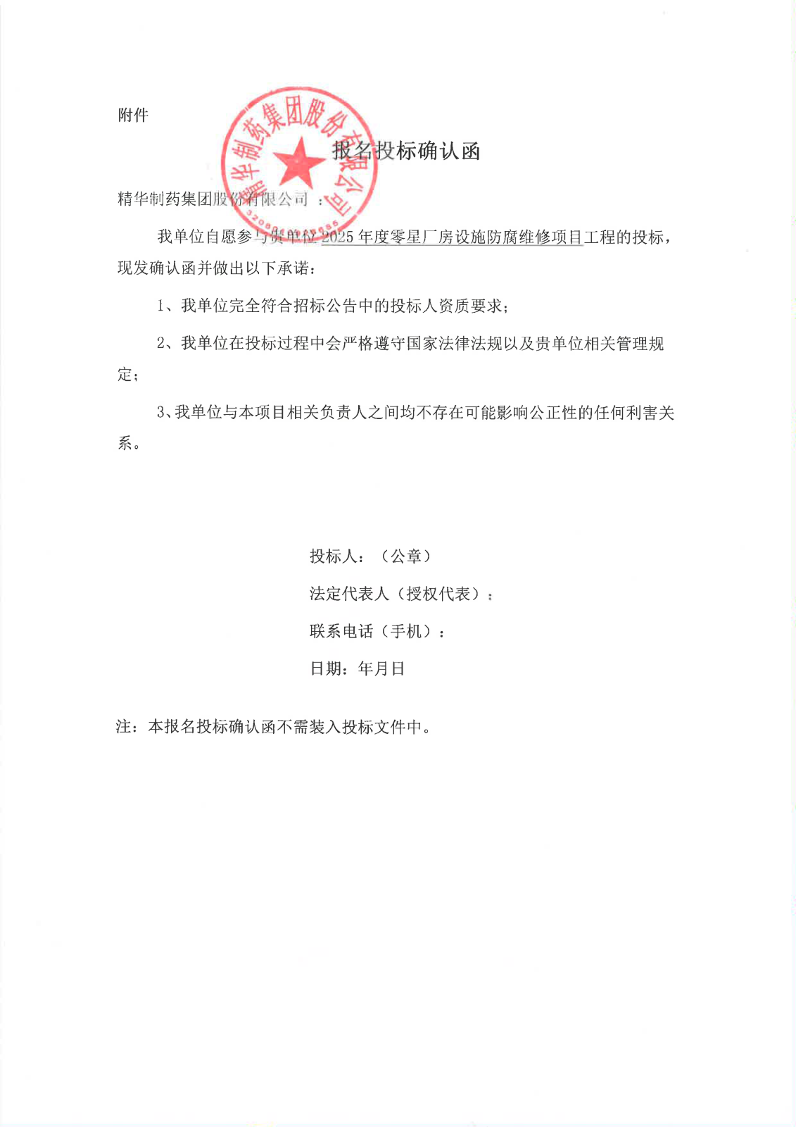 附件:报名投标确认函
