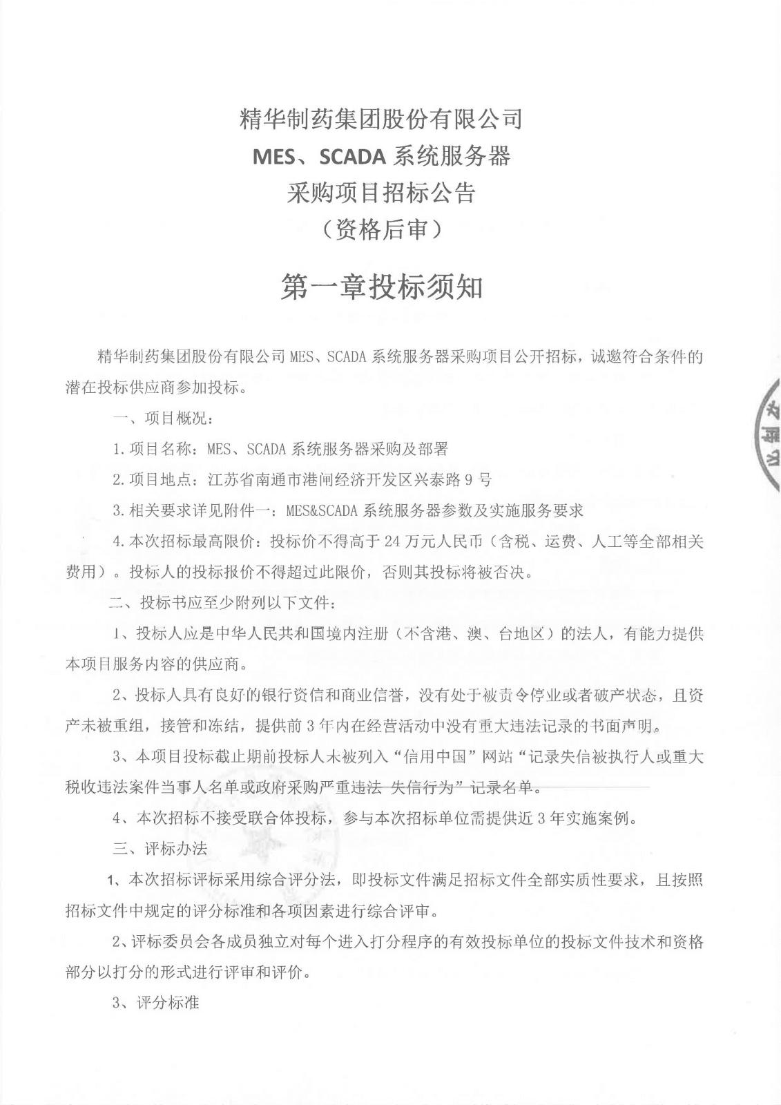 关于2026年精华制药MES&SCADA系统服务器招标,详见下图: